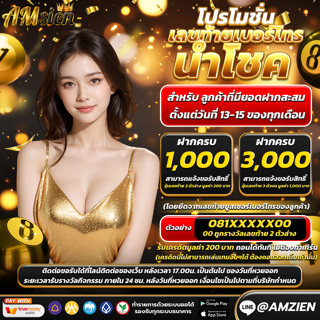 ฝากครบ 3,000 บาท สามารถแจ้งขอรับสิทธิ์ลุ้นเลขท้าย 3 ตัวบน มูลค่า 1,000 บาท